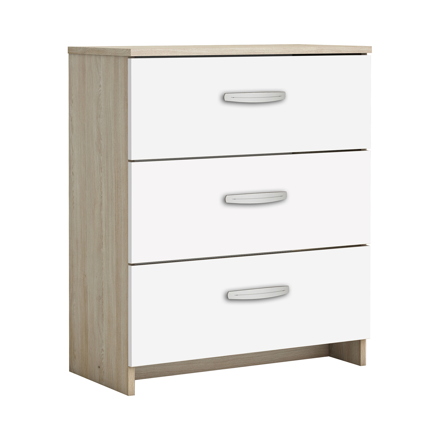 Nábytok do spálne: Komoda 3 zásuvky NANO dub/perleťovo biela